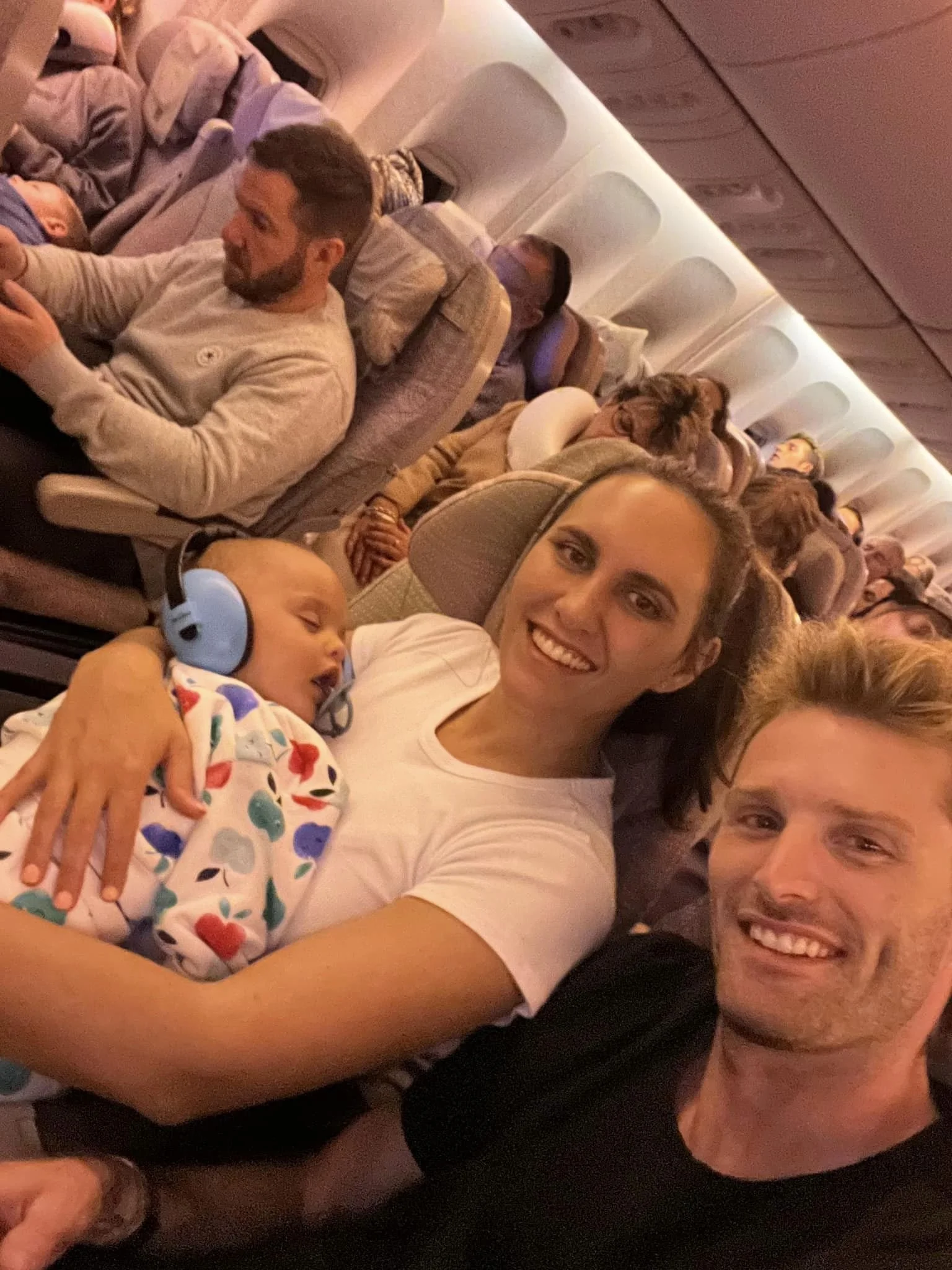 We took our baby earmuffs with us too which we put on the first time he went to sleep but again, the plane creates so much noise (kind of like a white noise) that I didn’t use them after that one time. It was more for the announcements waking him but they never seemed to bother him too much.